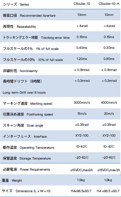 レーザマーキング、オンザフライマーキング、レーザドリリング、マイクロ加工、レーザ溶接、レーザ切断、ステレオリソグラフィー3Dプリント、レーザ医療アプリ ケーションなどの分野で、CScube-10は高精度、高速、高安定性で知られる当社のコスト効率の高い主力製品です。 当社では、以下の 2 つの標準製品を提供しています。